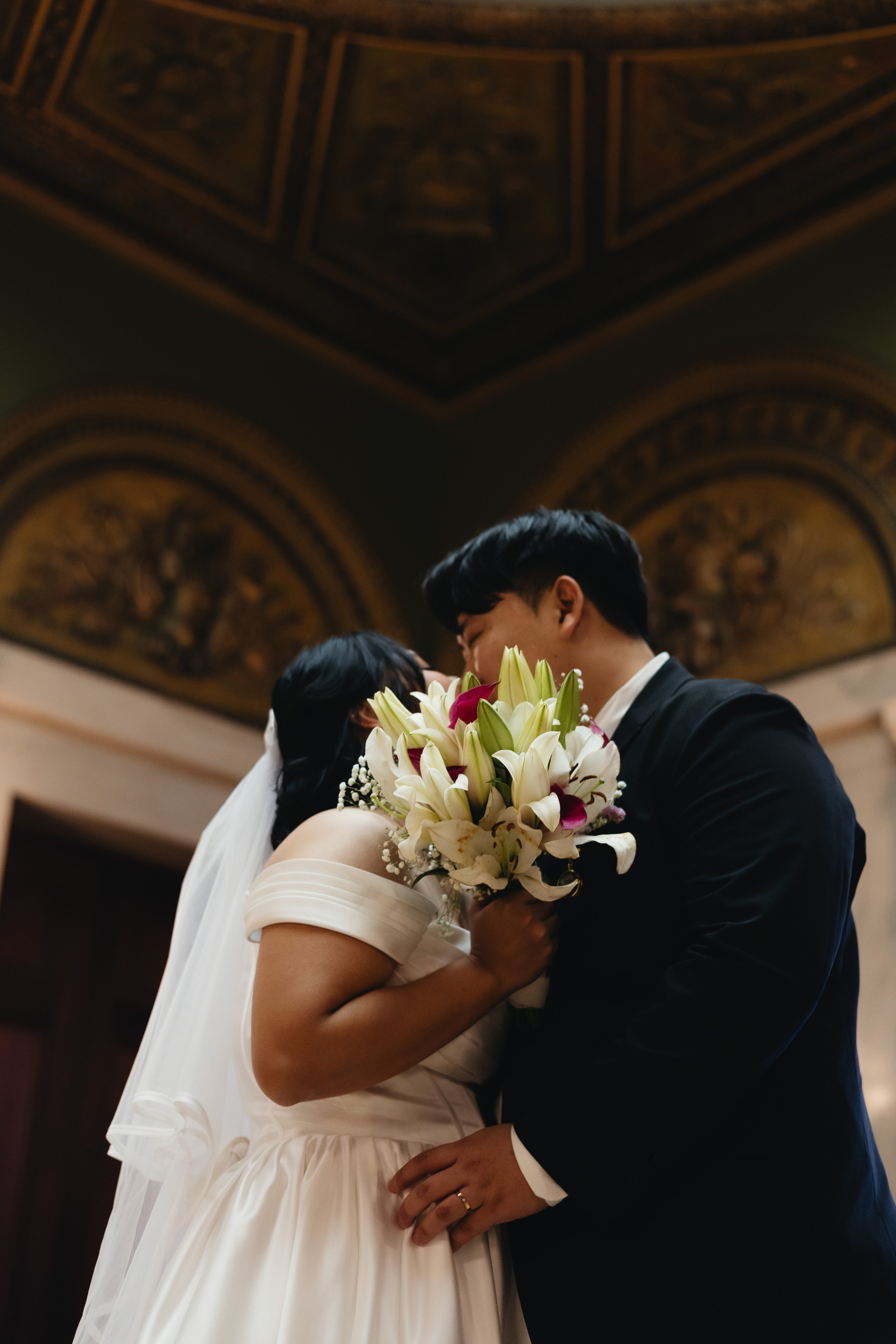 Hannie and Do-Yun chose to get married quietly, without a big crowd or elaborate plans. Just the two of them, their closest family, and the city they were in at that moment. Their winter elopement took place in downtown Chicago, starting with a civil ceremony at City Hall and continuing with portraits inside the Chicago Cultural Center.
